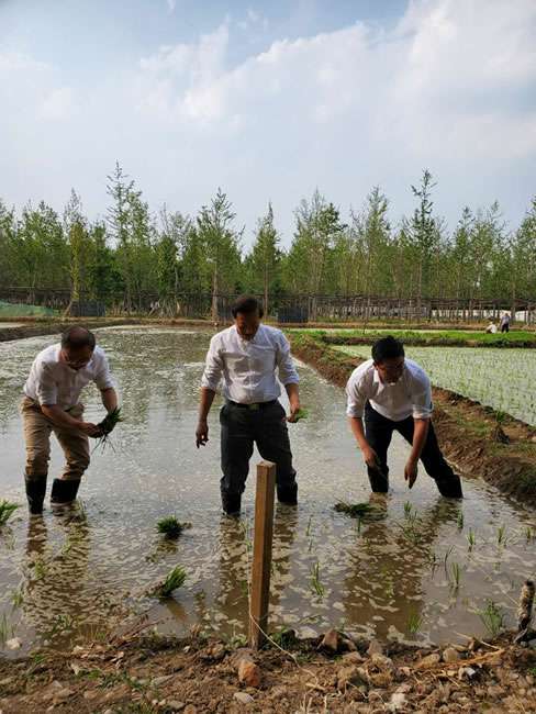 日前,云开体育网页版登录入口-云开(中国)董事长梁雨、总裁谢俊率集团高级管理人员来到位于北京西四环外的锦绣大地生态园,在景色迷人的玉泉山山下,同志们挽起裤脚跃进田里,生态园农业技术员一边弓腰示范,一边讲解道“插秧是个技术活,将秧苗窝在虎口处,既要轻又要稳,用巧劲儿将秧苗抛在泥里,不能抛得太深,又要确保植保灌溉时,秧苗不漂浮在水面上。”